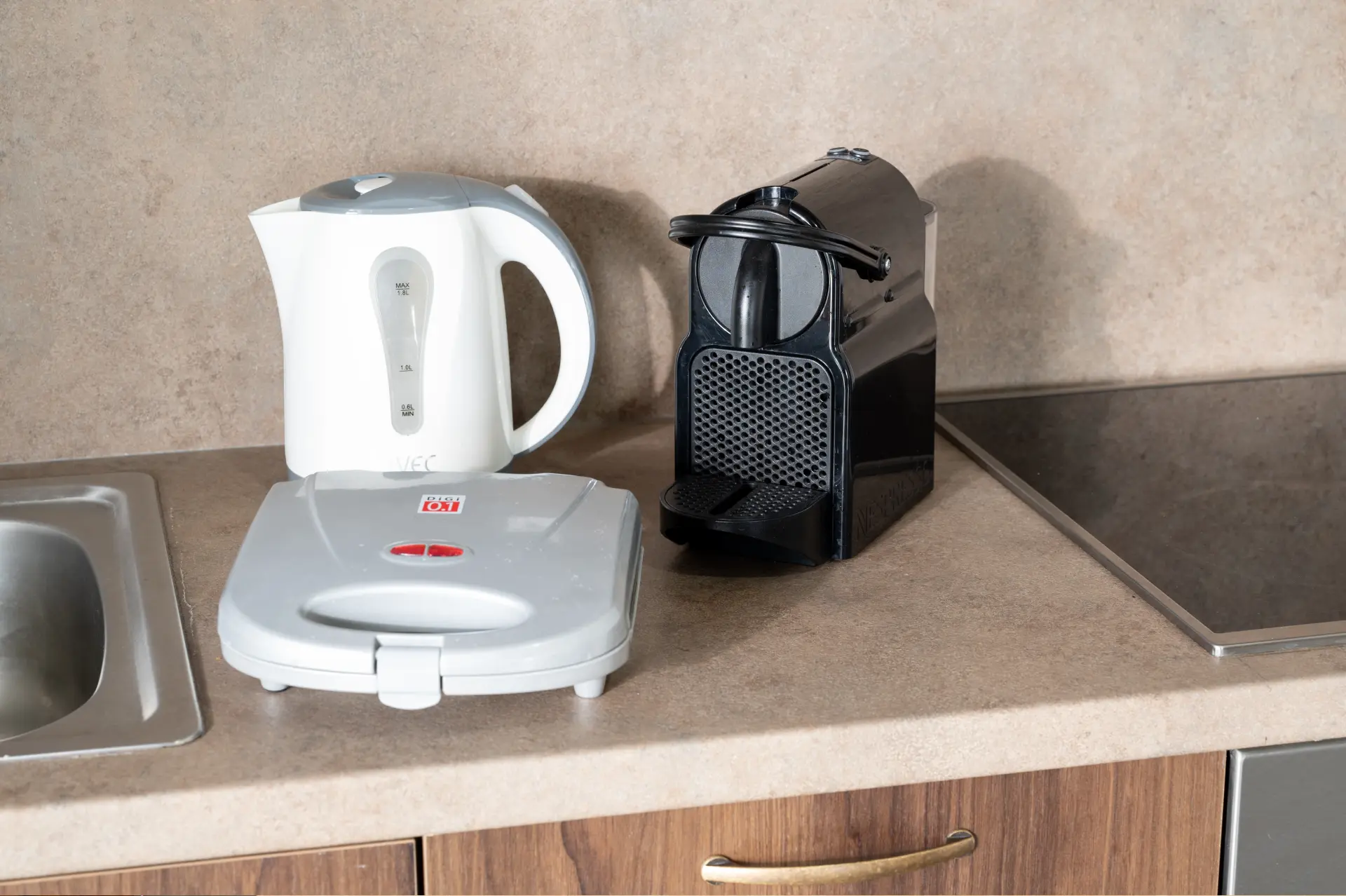 - Κουζίνα, ψυγείο, καφετιέρα, τοστιέρα, βραστήρας